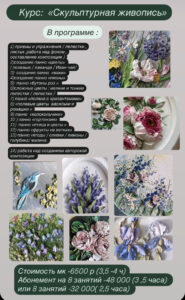 Стоимость: мастер-класса 6500 рублей (3,5-4 часа.)